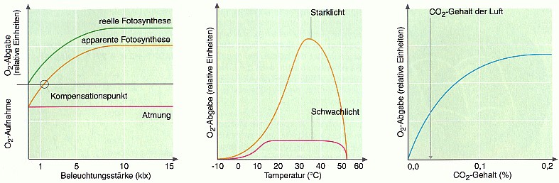 Diese Versuche zeigen vor allem die proportionale Steigerung der Photosyntheserate durch den Licht- und den CO2-Faktor