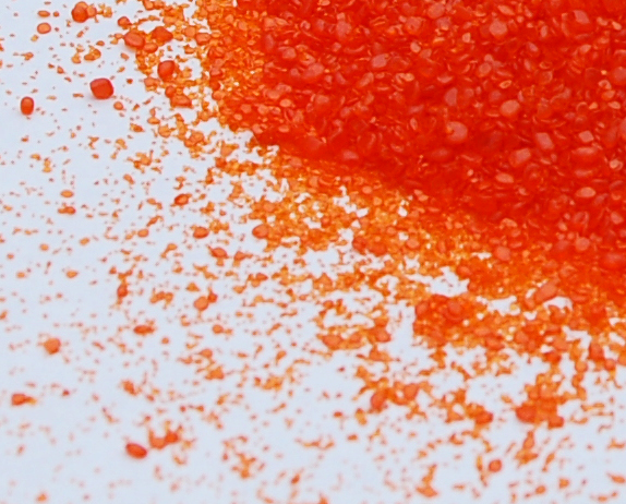 Eine kleinere Menge Ammoniumdichromat wird in einer Porcellanschale zu einem kleine Hügel aufgeschüttet.