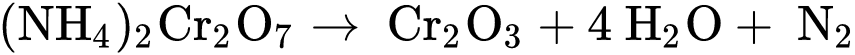 https://www.youtube.com/watch?v=oWpXPSBSe6M&t=42s Der erloschene Vulkan. Der große Volumenzuwachs beim grünen Chromoxid ergibt sich aus der Blähwirkung der bei der Zerfallsreaktion freigesetzten Gase: